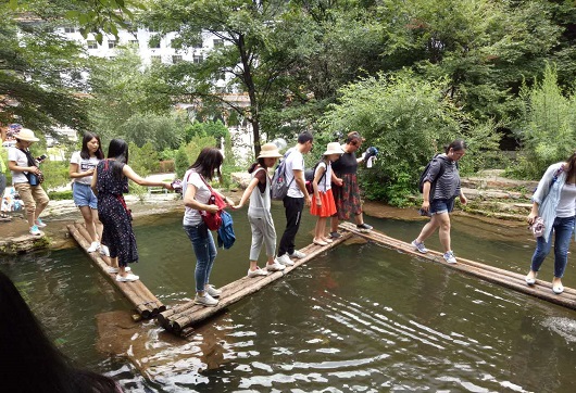 到達景區(qū)后,在導(dǎo)游的帶領(lǐng)下我們乘坐“小交通”一路上行,首先來到了綿山景點的第二站——云峰寺,之后去了水濤溝和一線天。在一線天陡峭的懸崖上有十余架天梯蜿蜒而上,而在我們的腳下是淙淙溪流。在這一路上,盛大美璃團隊表現(xiàn)出了他們團結(jié)互助的一面,主管白楊一路殿后生怕落下一個人,有些姑娘們不敢往前,大家就給以鼓勵,予以幫助,在這尖叫連連聲中到達了一線天的頂峰。這是整個游覽中最驚險,最刺激的一個環(huán)節(jié),也是最考驗人的一個環(huán)節(jié),雖然艱險,但是盛大鋼構(gòu)的每位成員都表現(xiàn)出了不怕困難、勇往直前的不服輸?shù)木瘛?/p>